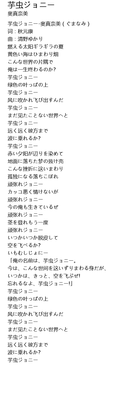 [00:00.00] 芋虫ジョニー-奥真奈美(ぐまなみ)