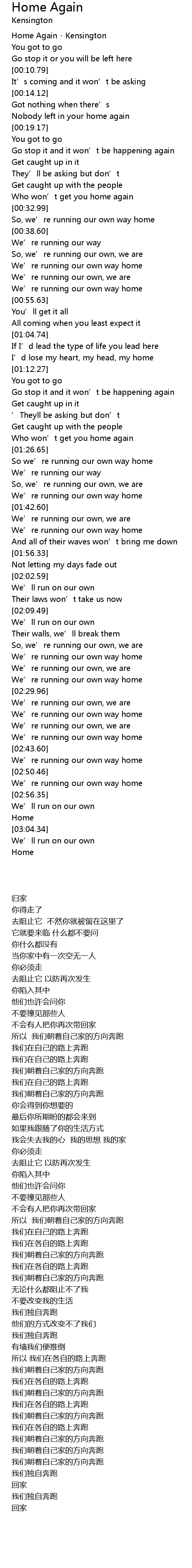 | [00:01.14] | Home Again - Kensington |