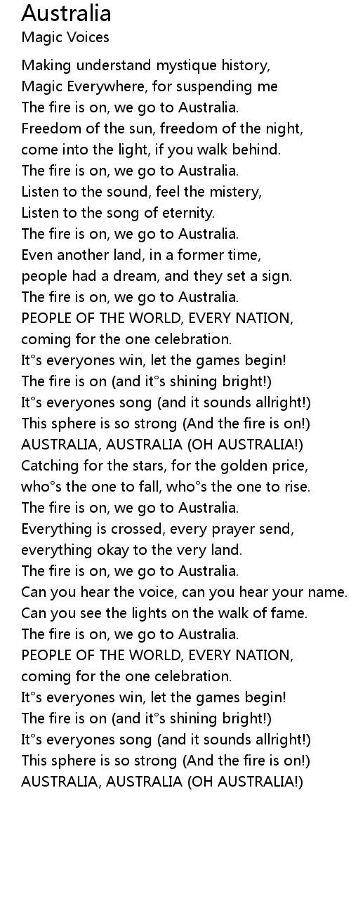 | AUSTRALIA, AUSTRALIA (OH AUSTRALIA!) |