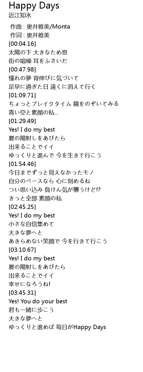 | [04:00.90] | ゆっくりと進めば 毎日がHappy Days |