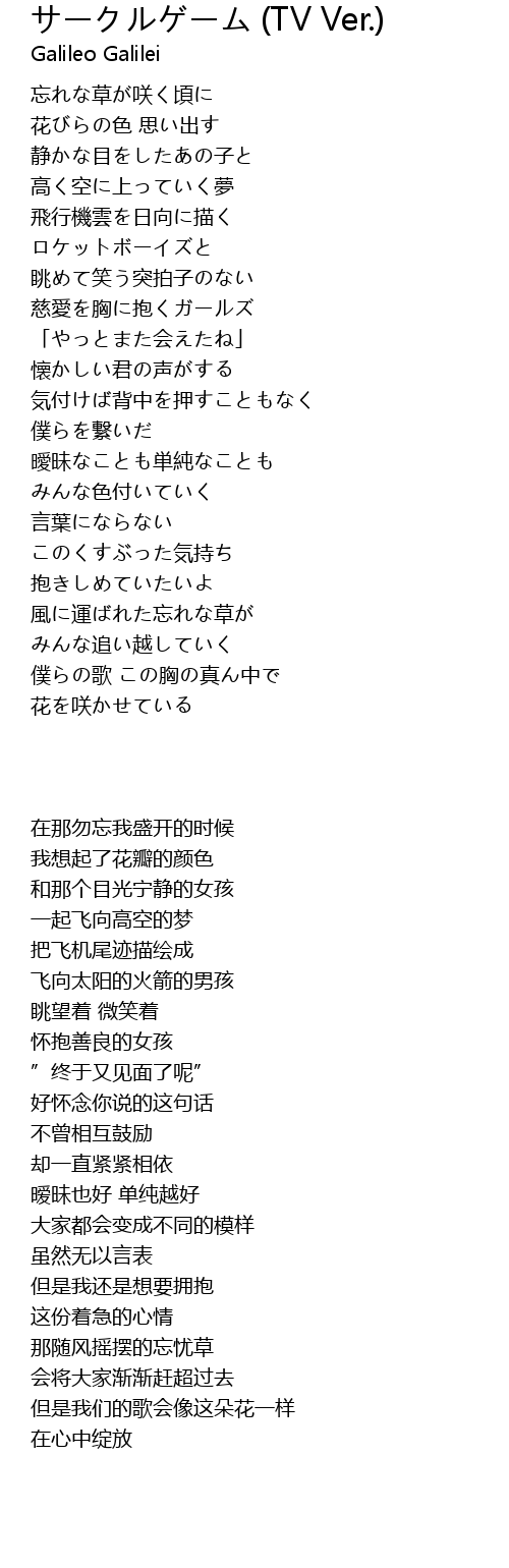 | 歌曲 | サークルゲーム (TV Ver.) |
