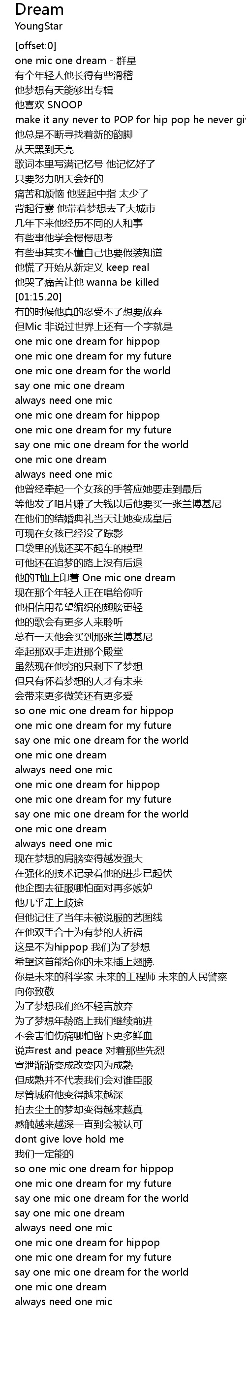 | [01:33.11] | one mic one dream for hippop |