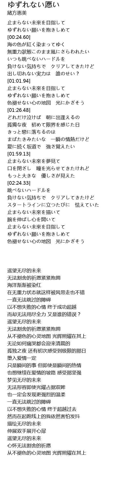 | [01:09.59] | ゆずれない願いを抱きしめて |