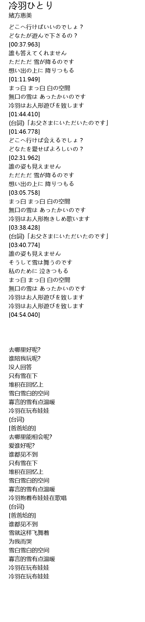 | [00:52.400] | ただただ 雪が降るのです |