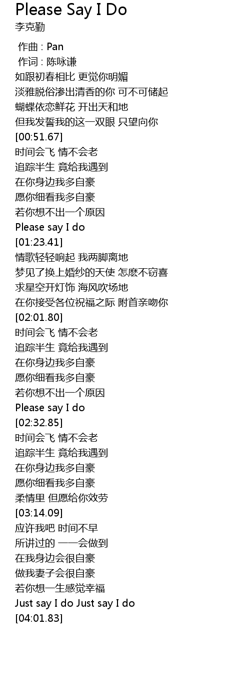 | [03:41.59] | Just say I do Just say I do |