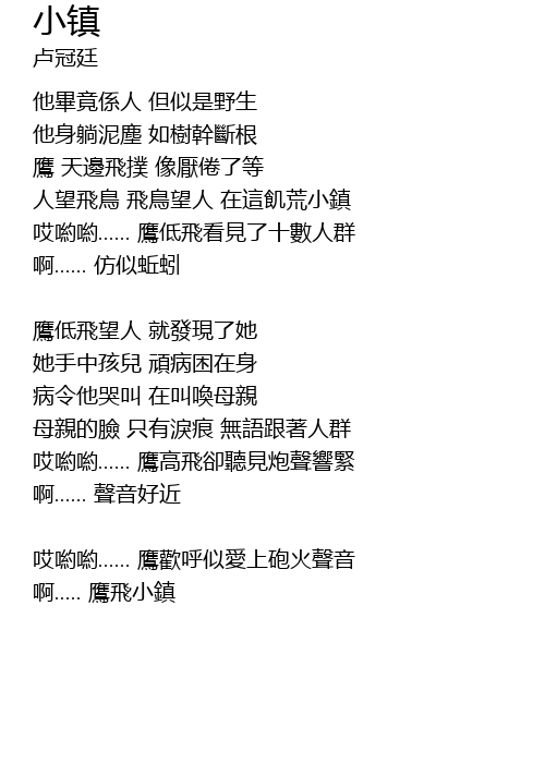 | 人望飛鳥 飛鳥望人 在這飢荒小鎮 | |