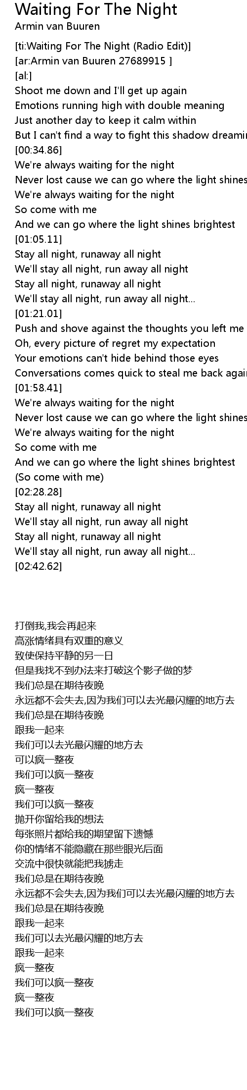 [ti:Waiting For The Night (Radio Edit)] |