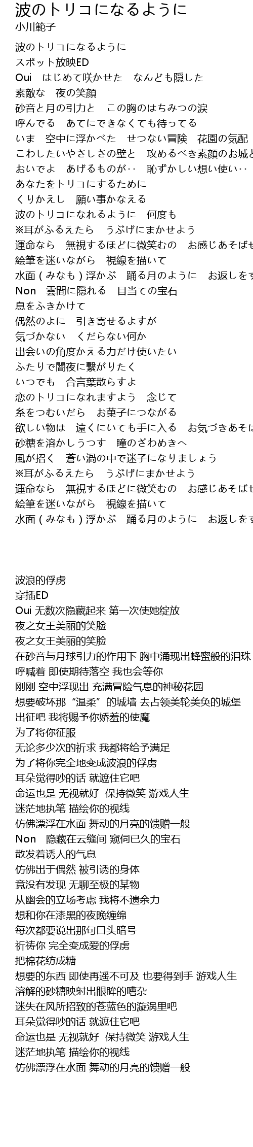 | 歌曲 | 波のトリコになるように |