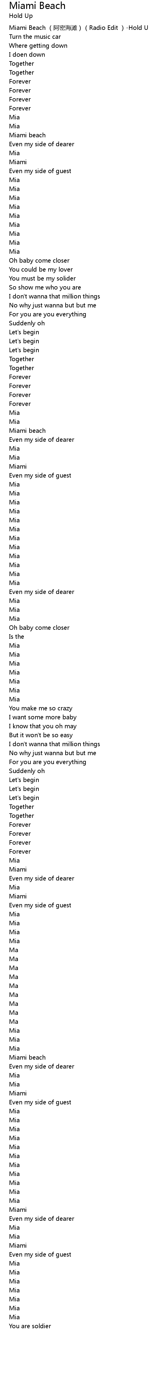 | [00:00.00] | Miami Beach ā mì hǎi tān Radio Edit Hold Up |