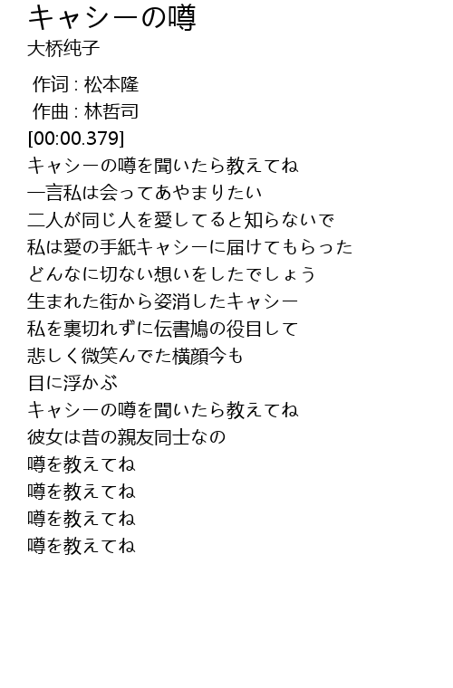 | [00:21.068] | キャシーの噂を聞いたら教えてね |