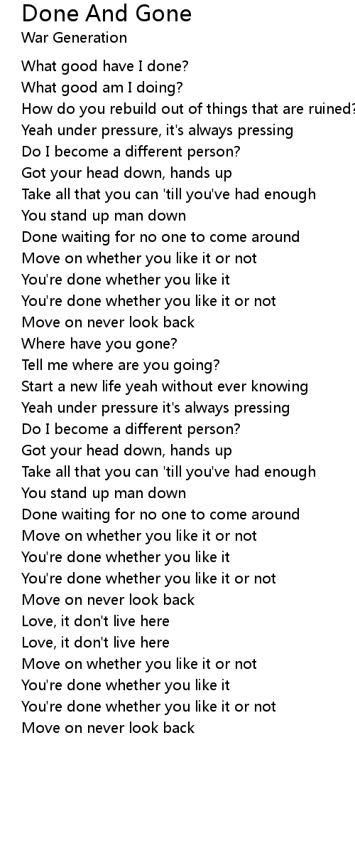 Move on never look back |