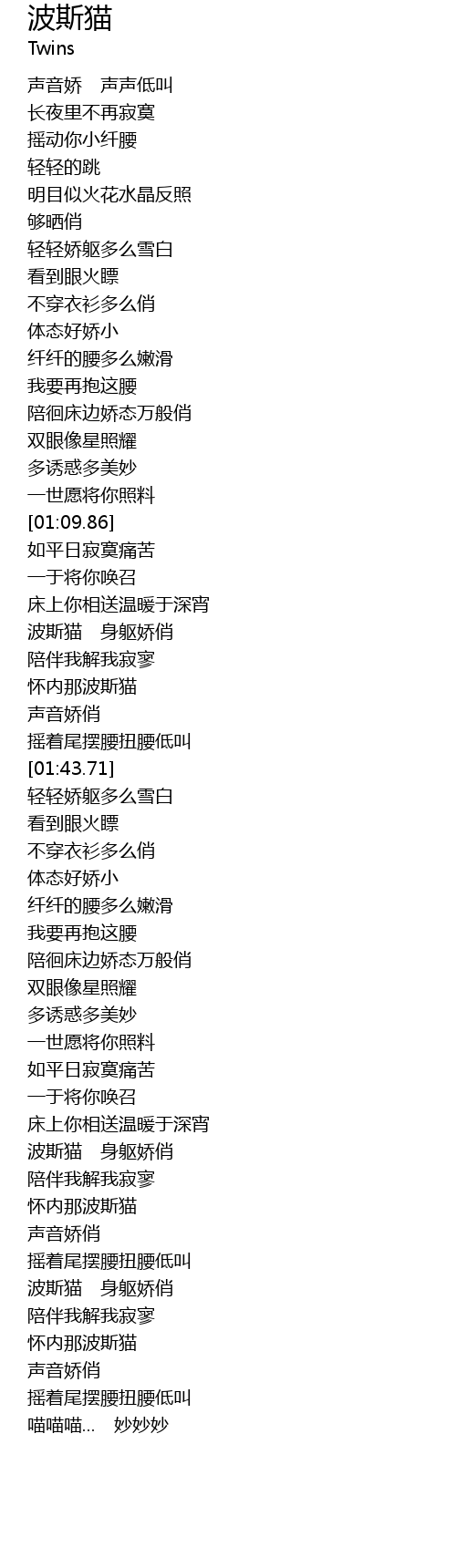 | [02:55.51] | 波斯猫 身躯娇俏 |