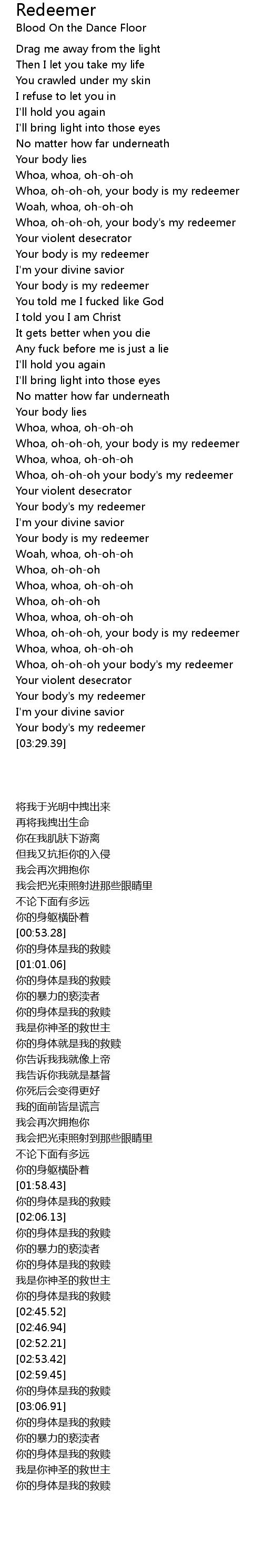 Your body's my redeemer |