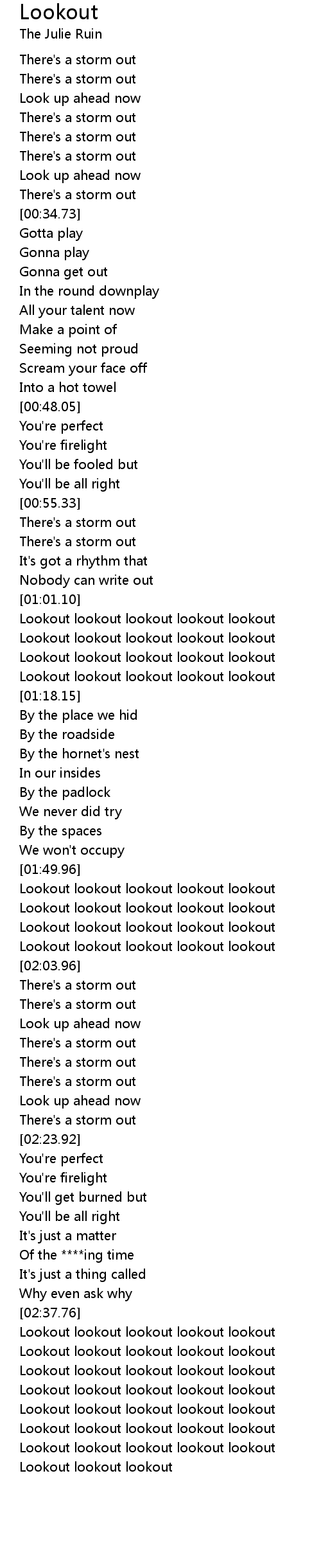 Lookout lookout lookout |