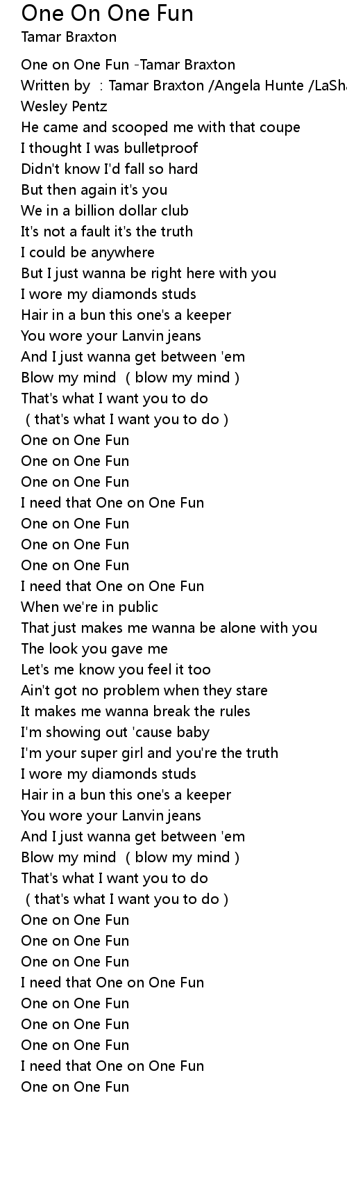 | [00:00.00] | One on One Fun -Tamar Braxton |