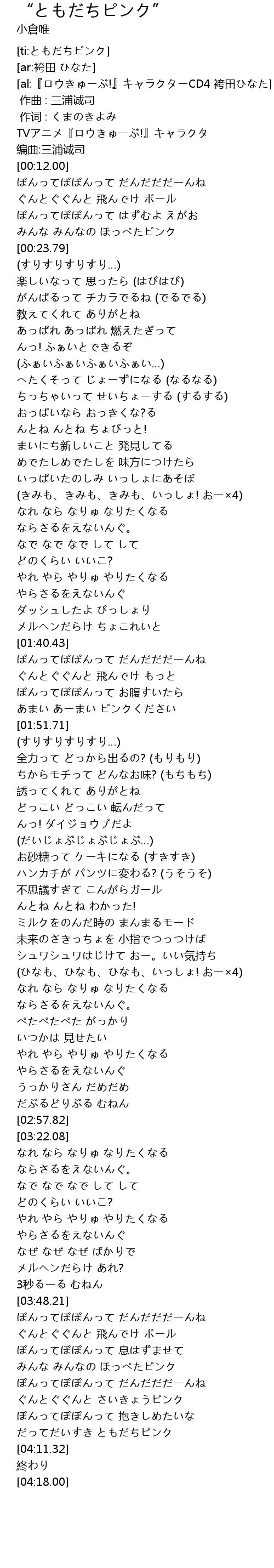 | [03:56.47] | みんな みんなの ほっぺたピンク |