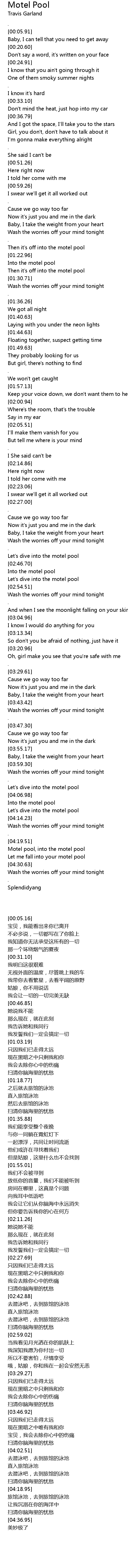 Let me fall into your motel pool |