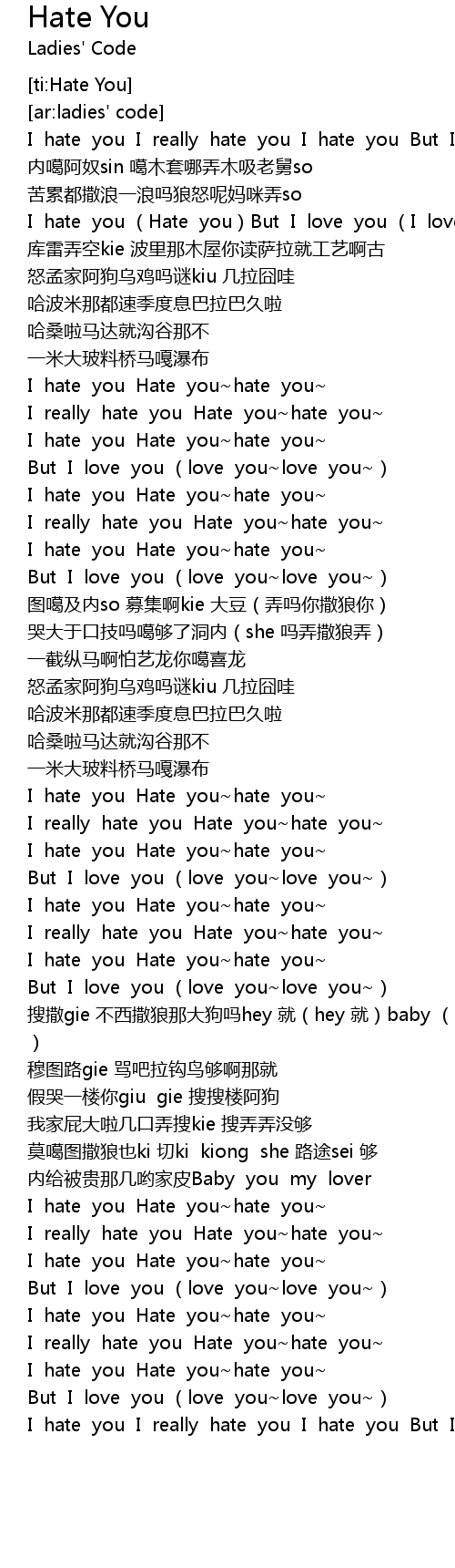 | [00:01.11] | I hate you I really hate you I hate you But I love you |