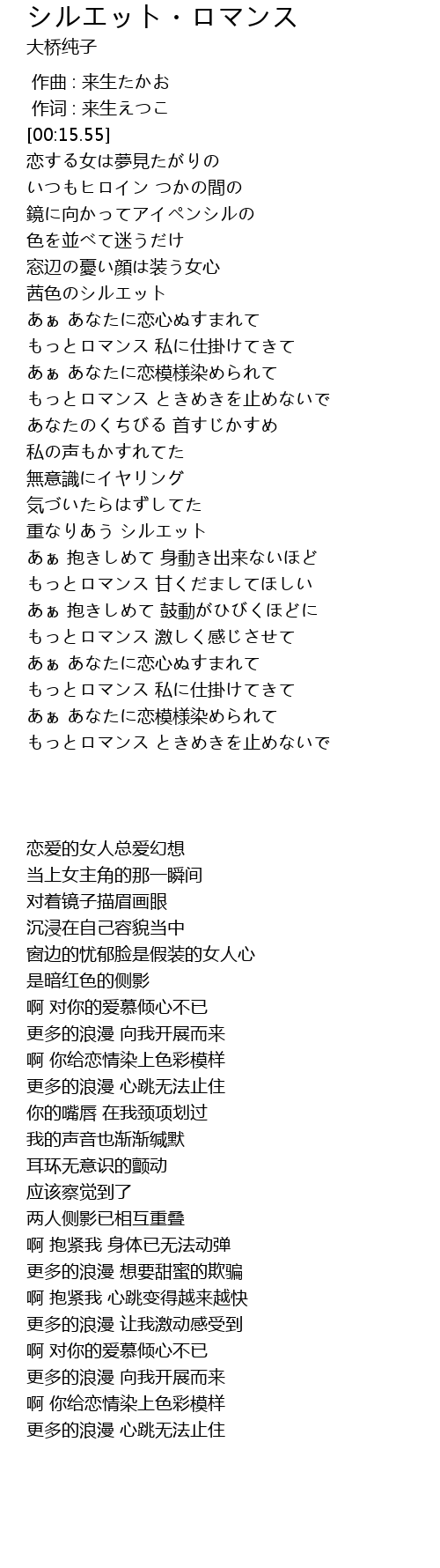 | [04:24.74] | もっとロマンス ときめきを止めないで |