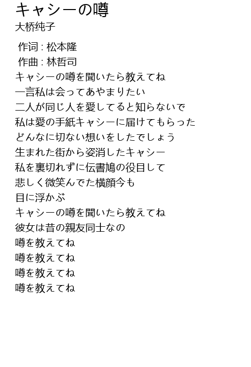 | [02:05.871] | キャシーの噂を聞いたら教えてね |