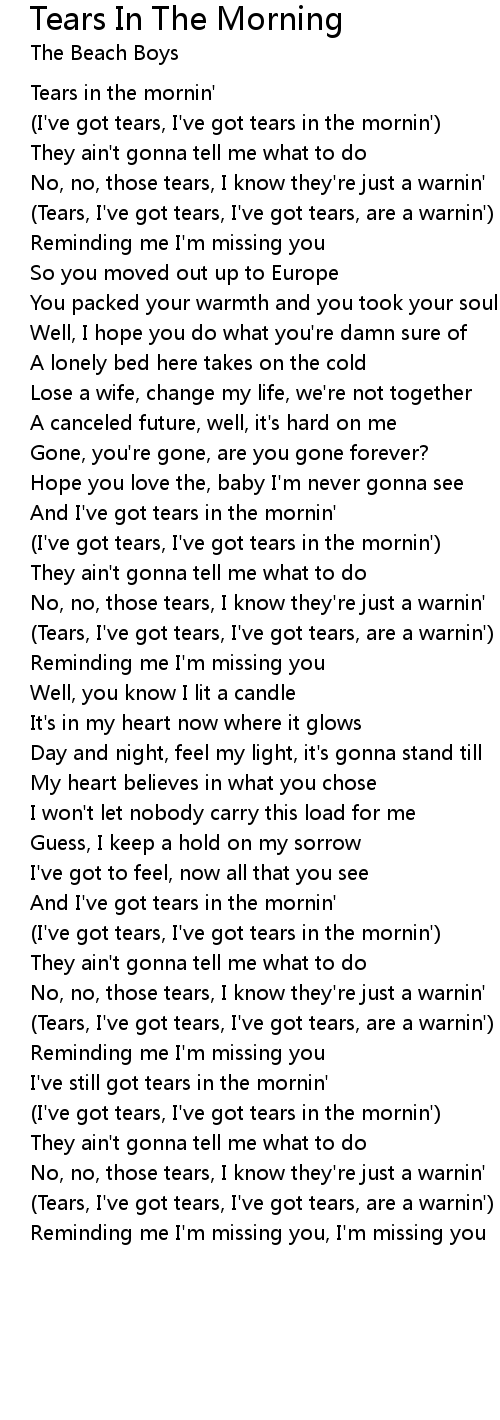 (I've got tears, I've got tears in the mornin') |
