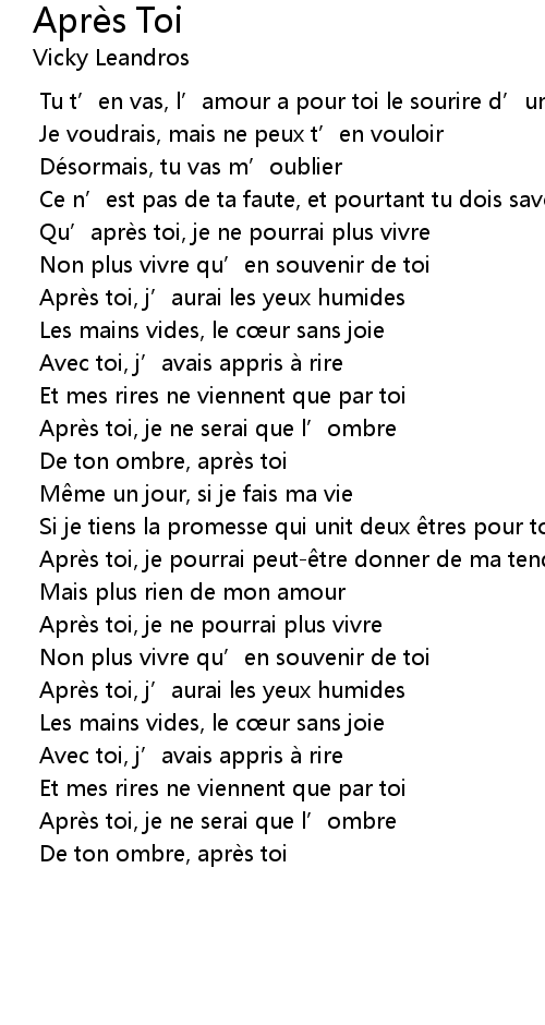 | [02:29.335] | Apre s toi, je ne pourrai plus vivre |
