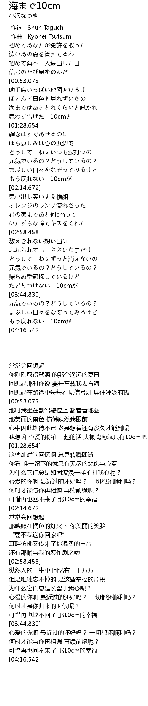 | [01:21.295] | 我想 和心爱的你在一起的话 大概离海就只有10cm吧 |