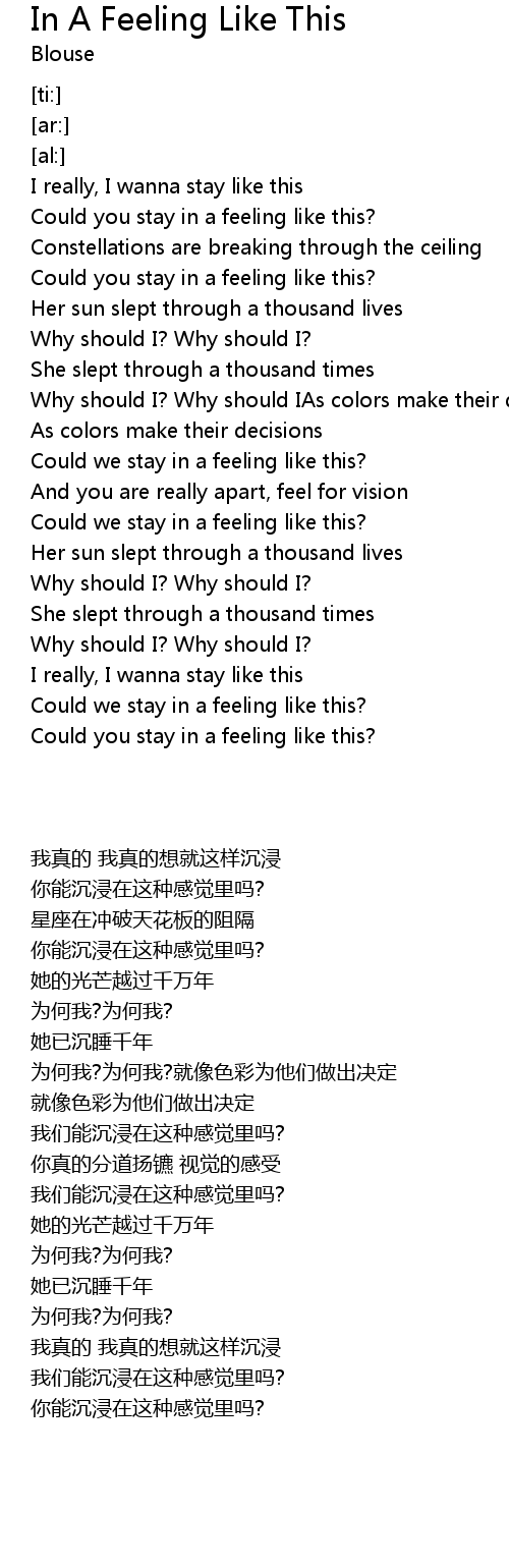 Could you stay in a feeling like this? |