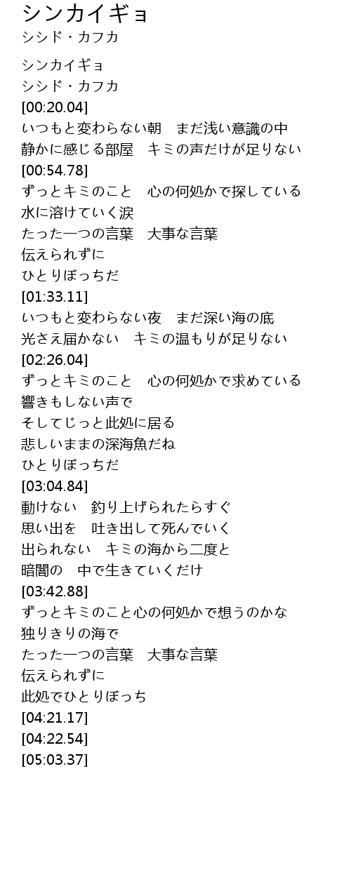 | [00:04.29] | シシド・カフカ |