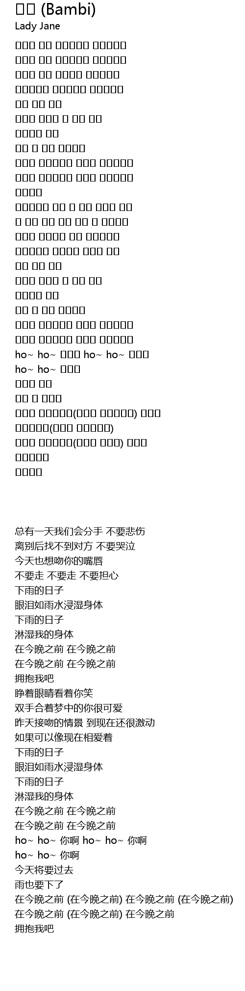 | [00:41.34] | 눈물이 빗물로 온 몸을 적셔 |