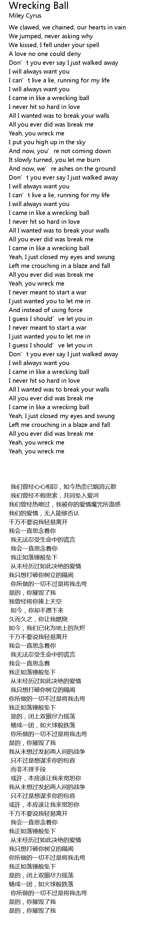 | 歌曲 | Wrecking Ball |