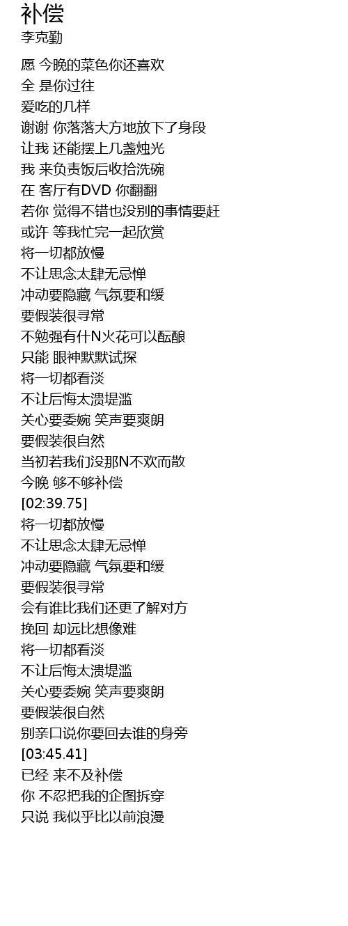 | [02:14.49] | 今晚 够不够补偿 |