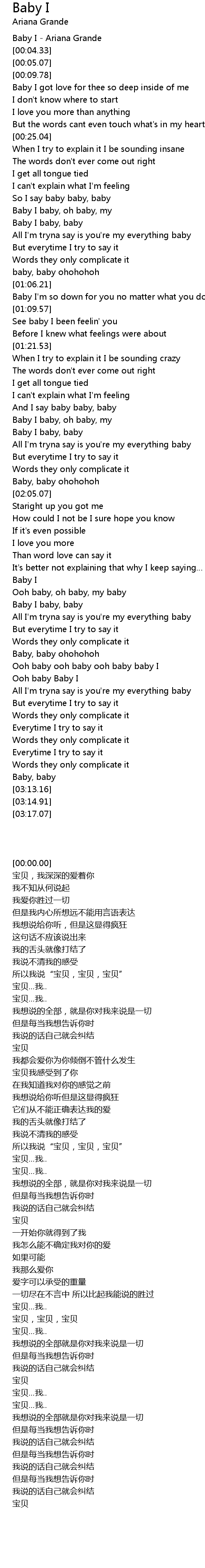 | [00:00.00] | Baby I - Ariana Grande |