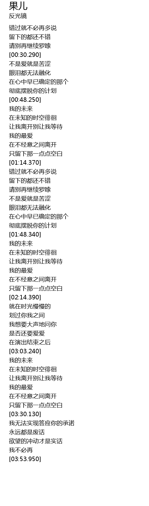 | [03:31.230] | 我无法实现答应你的承诺 |