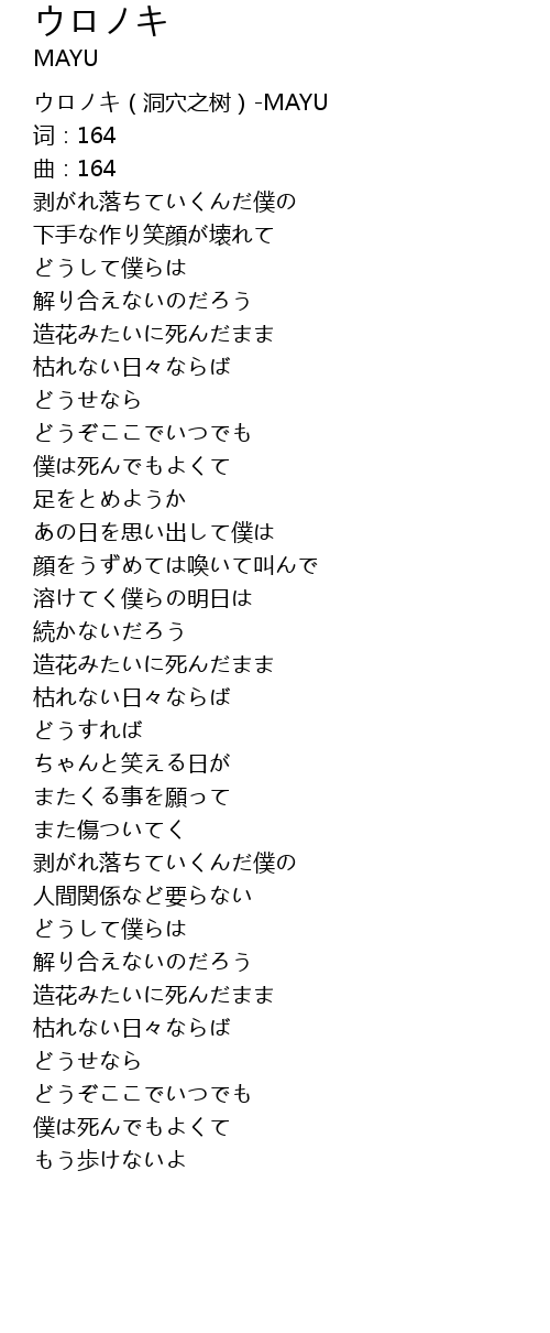 | [00:00.314] | ウロノキ(洞穴之树)-MAYU |