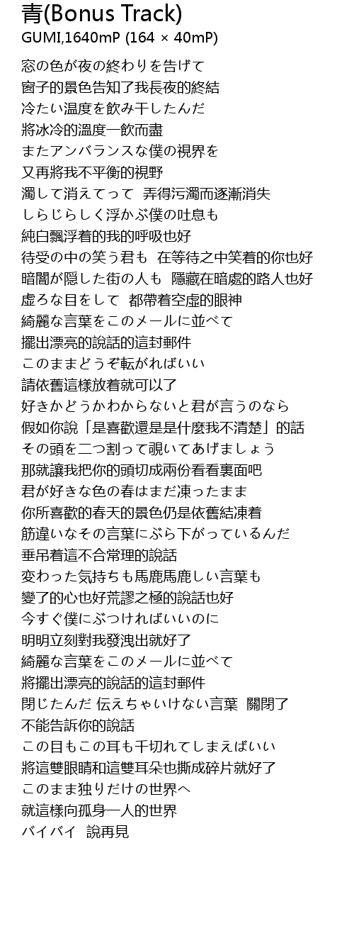 | [01:25.72] | 綺麗な言葉をこのメールに並べて 擺出漂亮的說話的這封郵件 |