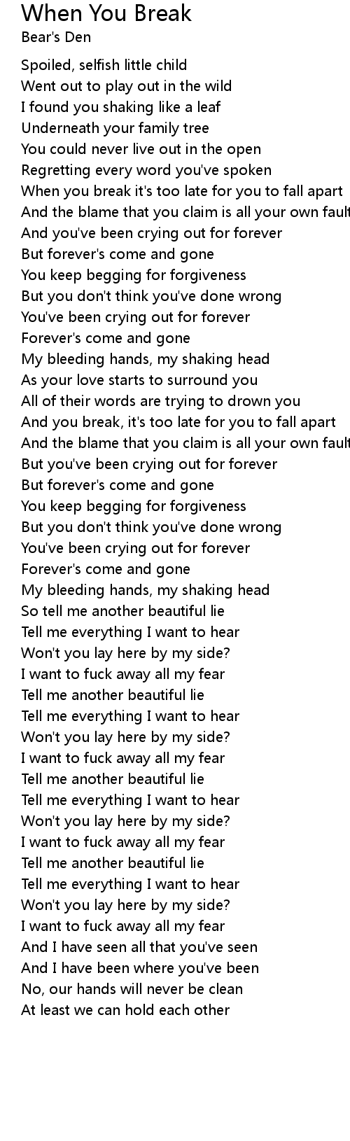When you break it's too late for you to fall apart |
