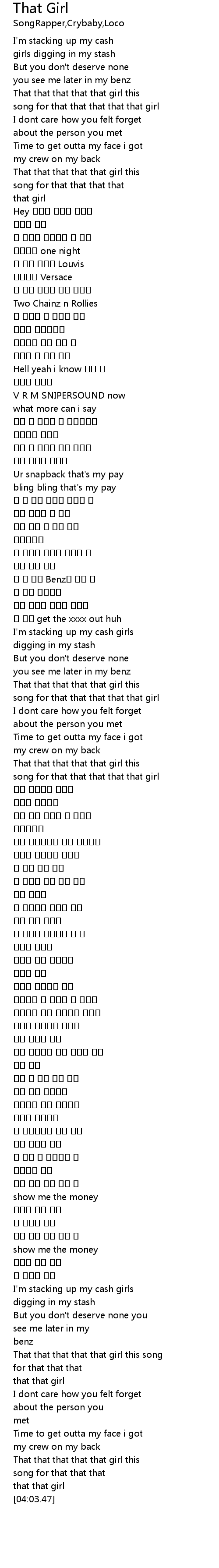 | [03:43.33] | That that that that that girl this song |