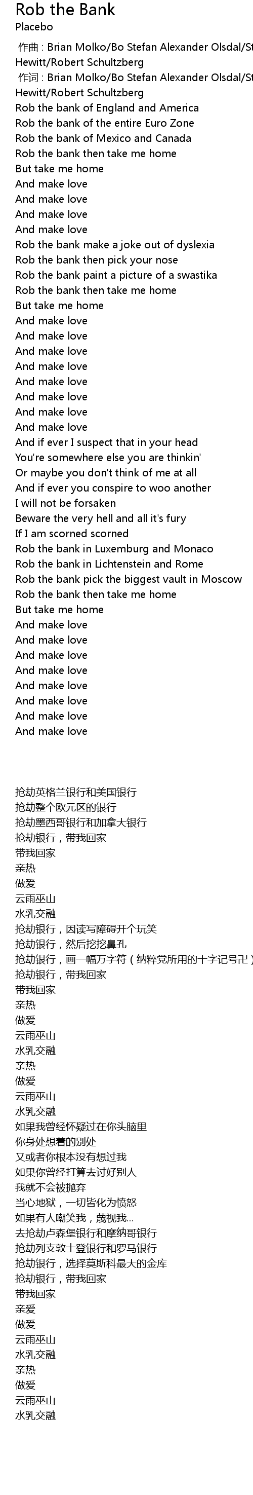 | [00:42.00] | Rob the bank make a joke out of dyslexia |