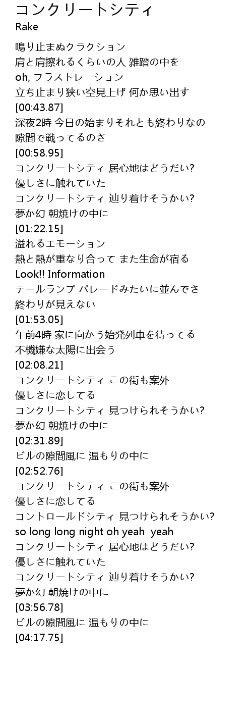 | [01:10.00] | コンクリートシティ 辿り着けそうかい? |