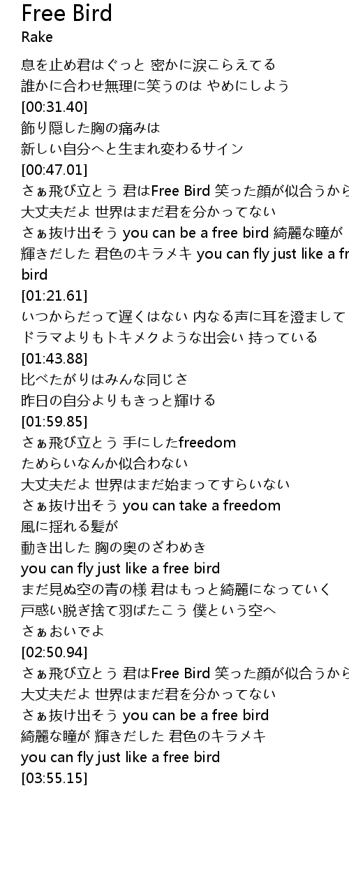 | [03:37.85] | さぁ抜け出そう you can be a free bird |