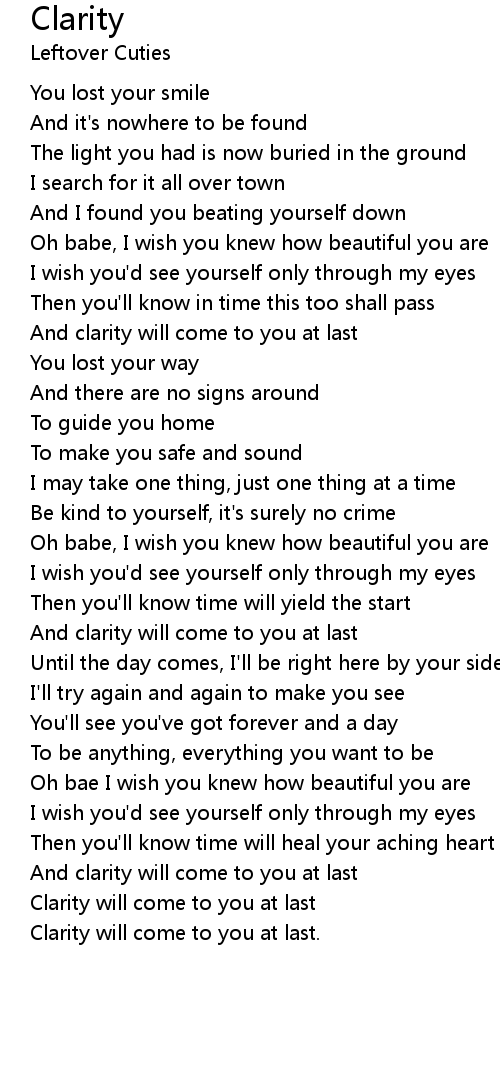 And clarity will come to you at last |