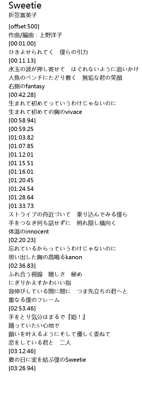 | [03:13.09] | xià rì shí jié pú Sweetie |
