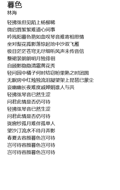 | [03:22.515] | 岂可待容颜暮色岂可待 |