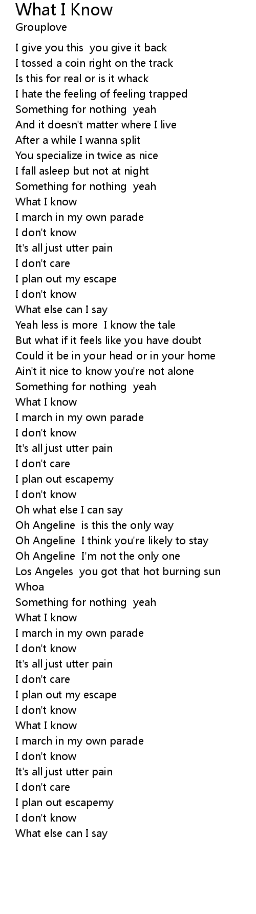 What I know |