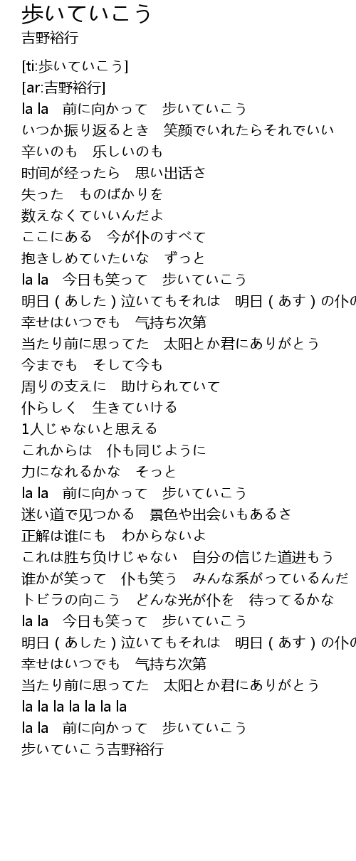 | [00:01.308] | la la 前に向かって 步いていこう |