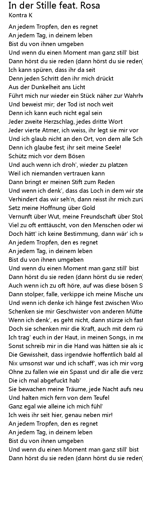 | Und wenn du einen Moment man ganz still' bist | |