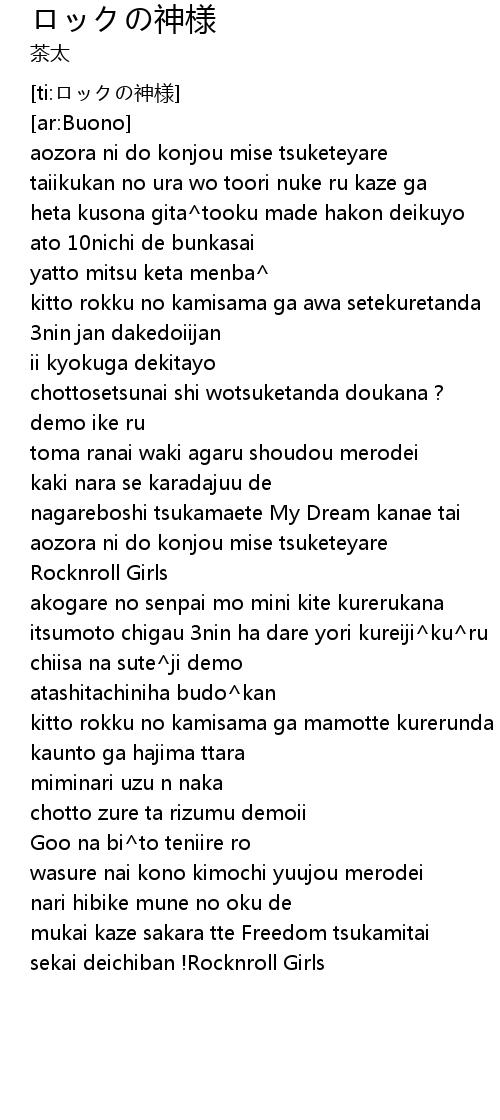 | [01:53.755] | kitto rokku no kamisama ga mamotte kurerunda |