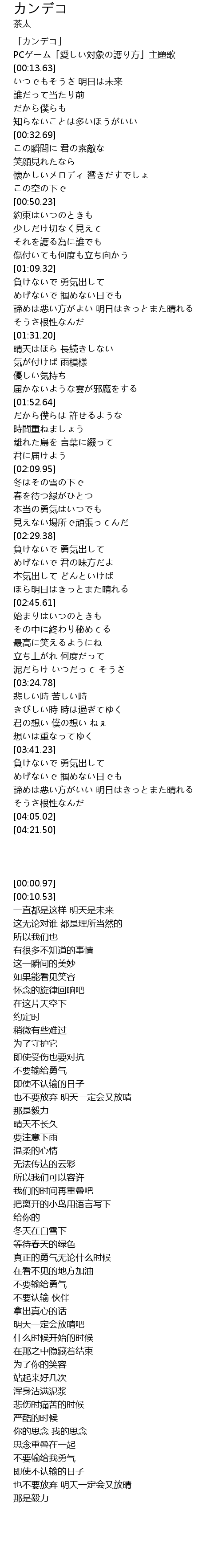 | [00:10.53] | PCゲーム「愛しい対象の護り方」主題歌 |