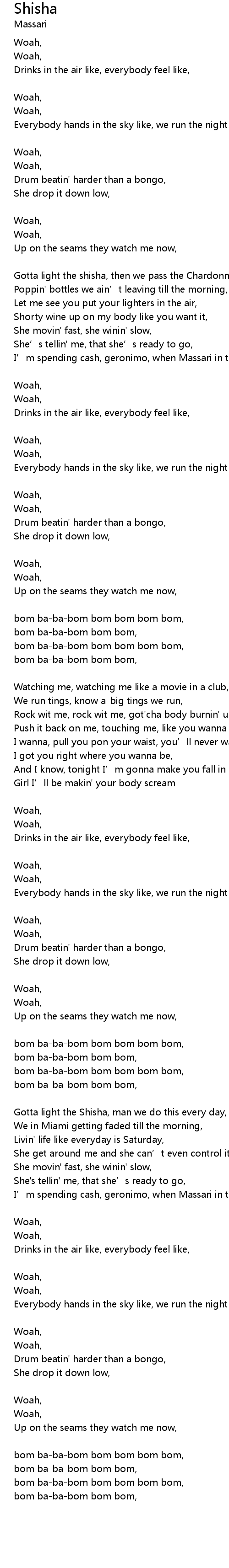 | Gotta light the shisha, then we pass the Chardonnay, | |